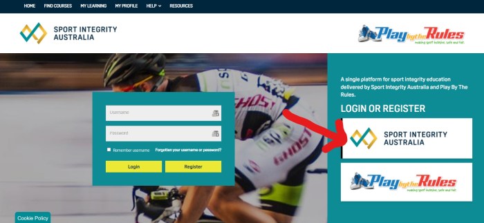 On the Sport Integrity Australia (SIA) webpage (see red arrow below) either sign up for a new account or login to your existing account by selecting the relevant button below. Further instructions are below for those completing the Sign-Up for the first time.